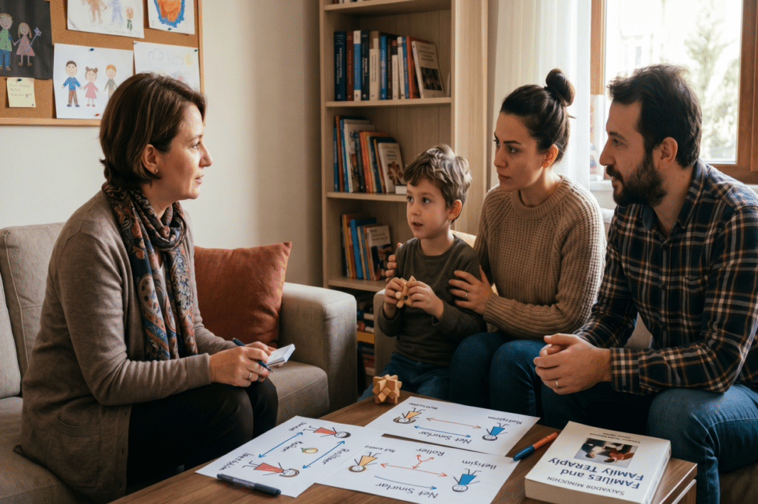 Bu noktada aile danışmanlığı süreci önemli bir destek mekanizması olabilir. Yapısal aile danışmanlığı yaklaşımı, aile üyeleri arasındaki ilişkileri analiz ederek daha işlevsel bir iletişim düzeni oluşturmayı amaçlar. Danışmanlık sürecinde ebeveynlerin rollerinin netleştirilmesi, aile içindeki sorumlulukların yeniden düzenlenmesi ve iletişim biçimlerinin geliştirilmesi üzerinde durulur. Aile temelli müdahalelerin çocukların davranışlarını düzenlemede etkili olabileceğine dair çeşitli araştırma bulguları bulunmaktadır. Özellikle ebeveynlere yönelik eğitim programlarının, çocukların davranışlarını yönetme konusunda ailelere önemli katkılar sağladığı belirtilmektedir (Sonuga-Barke vd., 2001). Bu tür çalışmalar, ebeveynlerin çocuklarının ihtiyaçlarını daha iyi anlamalarına yardımcı olurken aynı zamanda daha olumlu bir aile ortamı oluşturulmasına da katkı sağlar.