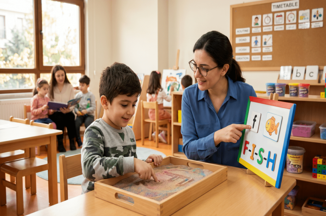 1. Uygulamalı (Hands-On) Etkinlikler Kum tepsileri, çocukların harfleri öğrenmelerini destekleyen oldukça etkili bir yöntemdir. Çocuklar parmaklarıyla harfleri yazarak kas hafızalarını geliştirirler. Oyun hamuru (Play-Doh), harf ve sayı öğretiminde oldukça etkilidir. Şekillendirme süreci çocukları motive eder ve tanımayı pekiştirir. Manyetik harfler ve harf kartları, kelime oluşturma ve yazım kalıplarını öğretmek için kullanılabilir.