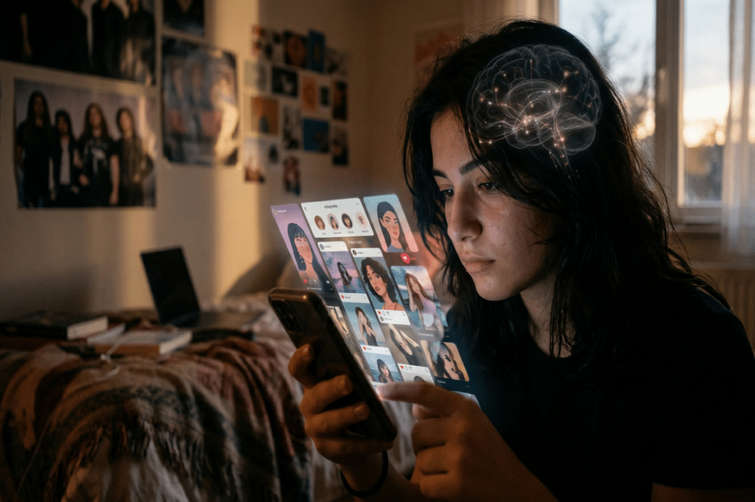 Ergenlik, bireyin yalnızca fiziksel değil; bilişsel, duygusal ve sosyal olarak da yeniden yapılandığı kritik bir gelişim dönemidir. Bu dönemde “Ben kimim?” sorusu, bireyin psikolojik örgütlenmesinin merkezinde yer alır. Ancak günümüzde bu soru artık yalnızca aile, okul ve akran çevresi içinde değil; yoğun biçimde dijital ortamlar aracılığıyla şekillenmektedir. Özellikle sosyal medya, ergenlerin kimlik gelişimi sürecine doğrudan müdahale eden yeni bir psikososyal alan haline gelmiştir.