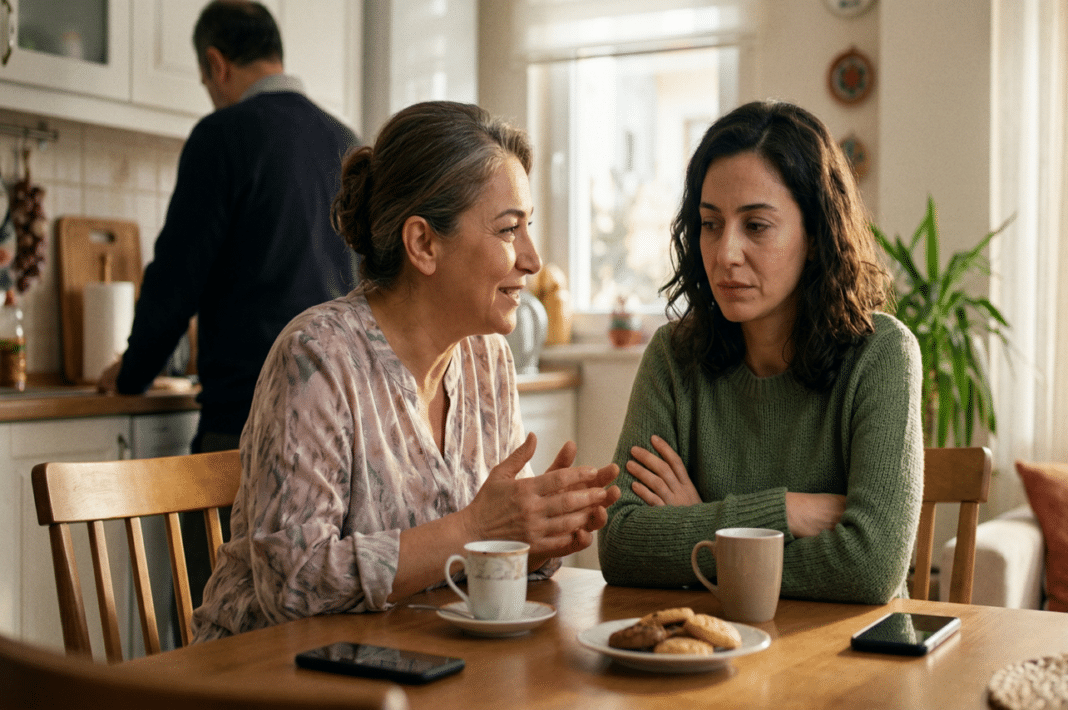 Bazı iyi niyetli sınır aşmaları yalnızca kişisel alanla sınırlı kalmaz. Evliliğine, eşinle olan ilişkine, evdeki düzenine, hatta çocuğunu nasıl büyüttüğüne kadar uzanır. Gülümseyerek sorular sorar, masum tavsiyeler verir, “ben olsam” diye başlayan cümlelerle hayatının merkezine doğru yürürler. Çocuğunla kurduğun bağı şekillendirmeye çalışır, seni ebeveynliğinde yetersiz, yanlış ya da aşırı bulan bir dil kullanırlar. Zamanla fark edersin ki mesele yardım etmek değil, senin ebeveynliğini, düzenini ve kararlarını kendi ölçülerine göre yeniden biçimlendirmektir. Ve insanın içini asıl acıtan şudur: Bu müdahaleler bağırarak değil gülümseyerek yapılır. Bu yüzden de çoğu zaman “abartıyorsun” denilerek görünmez kılınır.