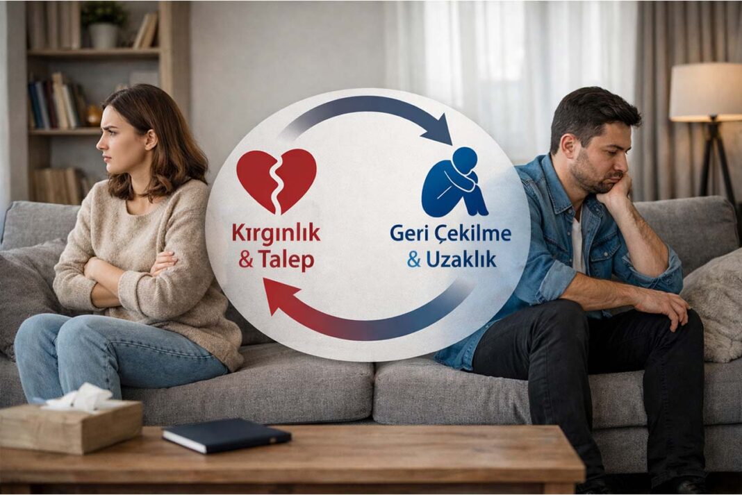 Bir taraf daha fazla temas ve açıklık isterken, diğer taraf geri çekilme ihtiyacı hissedebilir. Geri çekilme arttıkça talep yoğunlaşır. Talep yoğunlaştıkça geri çekilme daha da belirgin hale gelir. Ve tartışma başlar.