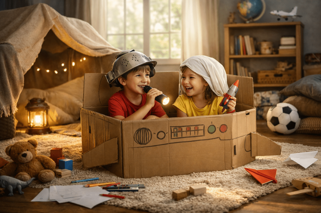 Örneğin basit bir karton kutu çocuk için bir uzay gemisine dönüşebilir. Bir battaniye ya da birkaç koltuk minderleri bir anda çadır olabilir. Bu tür oyunlar dışarıdan bakıldığında basit gibi görünse de aslında çocukların zihinsel gelişimi açısından oldukça destekleyicidir çünkü bu süreçte çocuk hayal kurar, sembolik düşünmeyi kullanır ve kendi dünyasını yansıtarak geliştirir.