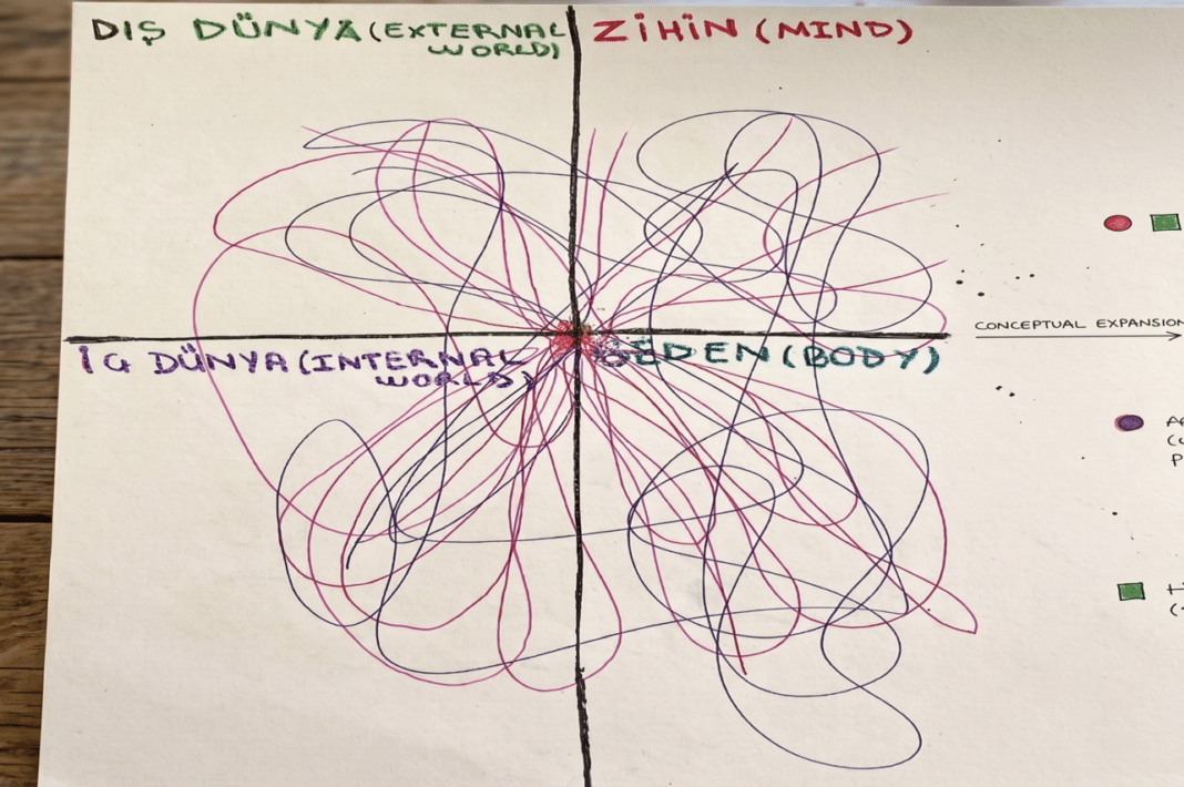 Kavramsal tanımlamalardan önce, nelerden nasıl bahsettiğimize dair kabataslak bir fikrimiz olması adına elimizdeki dört alan olan beden, zihin, iç dünya ve dış dünya ile başlamak isterim. Bu kavramlar milyonlarca araştırma, kitap ve ders niteliği taşıyan, derinleştikçe bambaşka yolların açıldığı kavramlar. Ancak elimizdeki taslağı kabaca ele almak gerekirse şu şekilde açıklayabilirim: