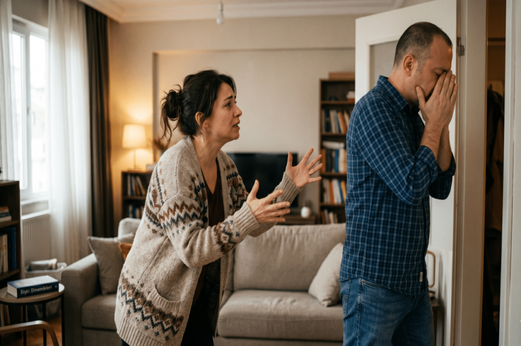 Kaygılı Partnerin Dünyası: Temel korkusu terk edilmek ve reddedilmektir. Partneri fiziksel veya duygusal olarak uzaklaştığında, alarm sistemi devreye girer. Onun için sessizlik veya mesafe, “Artık sevilmiyorum” anlamına gelir. Bağlantıyı yeniden kurmak için eleştirir, talep eder veya öfkelenir. Amacı partnerini incitmek değil, onu ilişkiye geri çekmektir.