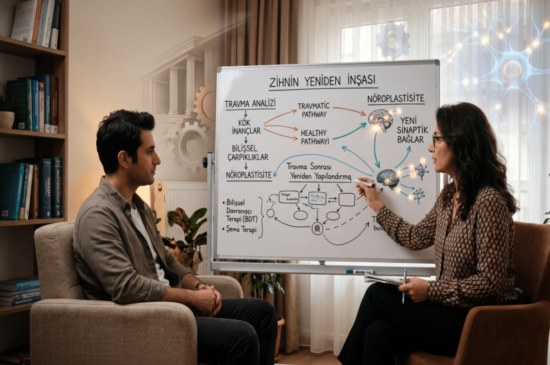 Kişi, terapide öğrendiği yeni perspektiflerle olaylara yaklaştıkça, beynindeki eski, yıkıcı düşünce patikaları zayıflar ve yerine daha sağlıklı, işlevsel sinaptik bağlar kurulur. Bu, tesadüfi bir süreç değil; Bilişsel Davranışçı Terapi, Şema Terapi veya Dinamik yaklaşımlar gibi binlerce klinik araştırmayla etkinliği onaylanmış yöntemlerin sonucudur.